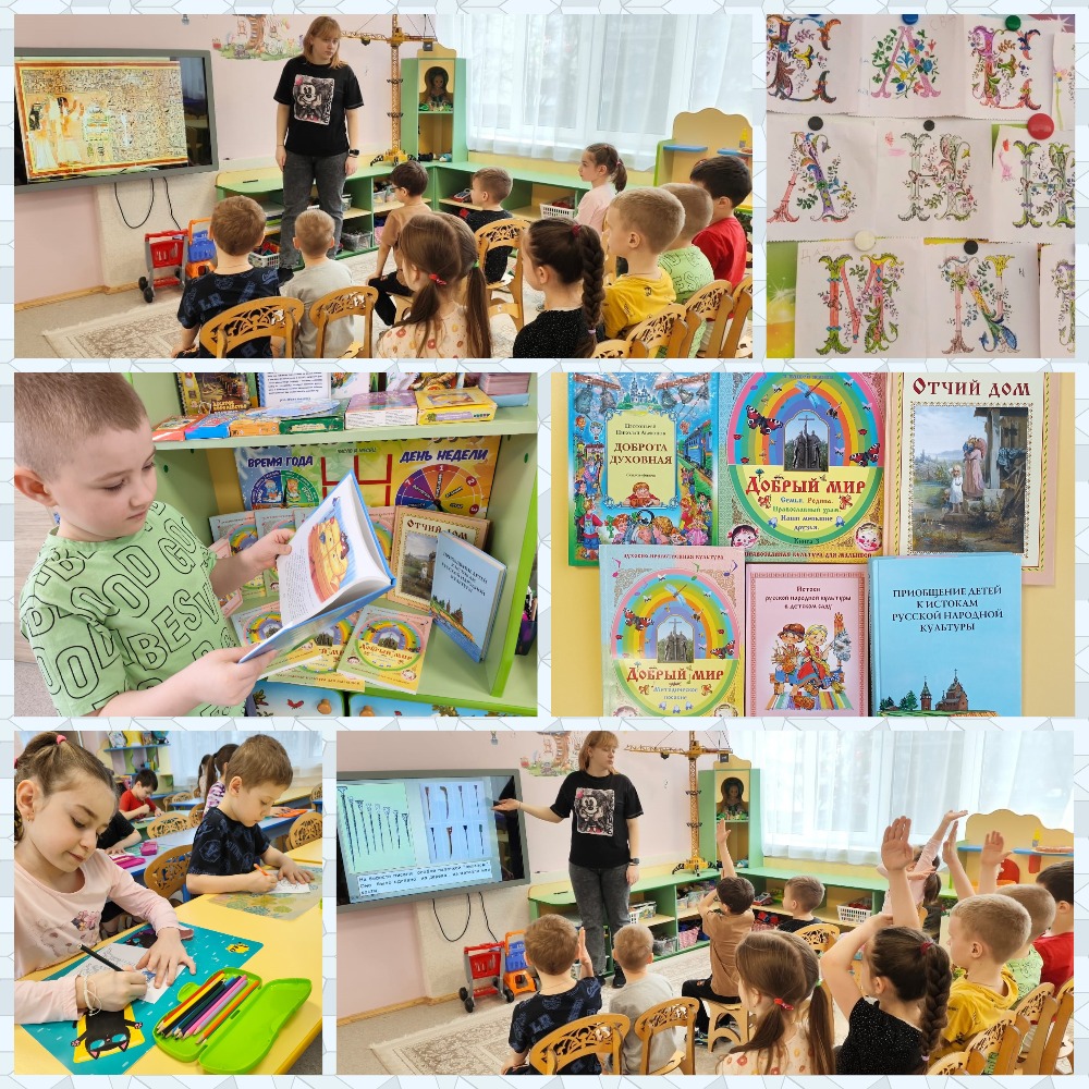 Педагоги в интересной и познавательной форме дали детям знания о православной книге. С большим интересом ребята посмотрели презентацию «14 марта – День Православной книги». Дети познакомились с историей появления первой книги на Руси, узнали о первом книгопечатнике Иване Федорове. В детском саду была организована выставка православных книг. Дети узнали, что они учат добру, взаимопомощи, уважению к старшим и с большим интересом рассматривали яркие, красочные иллюстрации. Воспитанники не только ознакомились с православными книгами, но и попробовали своими руками изготовить мини-книжки, раскрасить витиеватые буквы.