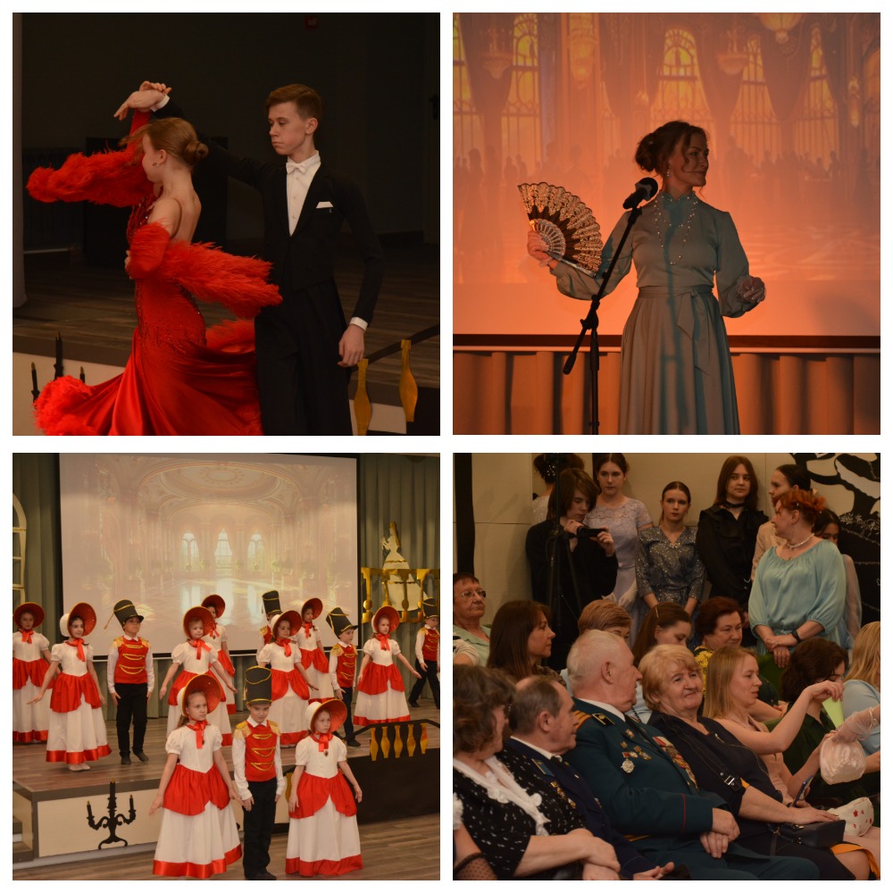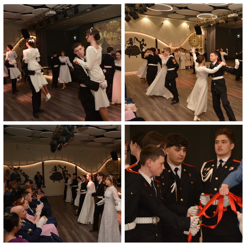 На балу вниманию гостей были представлены вариации вальса: венский, фигурный и вальс на современную музыку, гусарская полька, озорная мазурка, полонез. В этом году на бал также были приглашены пары из 5,6 и 7 классов, выступили с очаровательным номером "Гусары и барышни" воспитанники хореографического коллектива "Смайл", ученица 7 класса Т. София с партером У. Иваном выступили с венским вальсом. В. Даниил ученик 7 класса исполнил кадетский вальс собственного сочинения. Настоящей жемчужиной праздника стал романс в исполнении Солнцевой Ксении " За все спасибо, добрый друг" под аккомпанемент учителя музыки Сажновой Валерии Михайловны. Гостей развлекали фантами с заданиями, связанными с культурой и этикетом бала: угадать романсы из фильмов, из какого кино отрывок и загадки о танцах. В финале педагоги гимназии и кадеты исполнили совместный номер под композицию Е. Дога из кинофильма "Мой ласковый и нежный зверь".