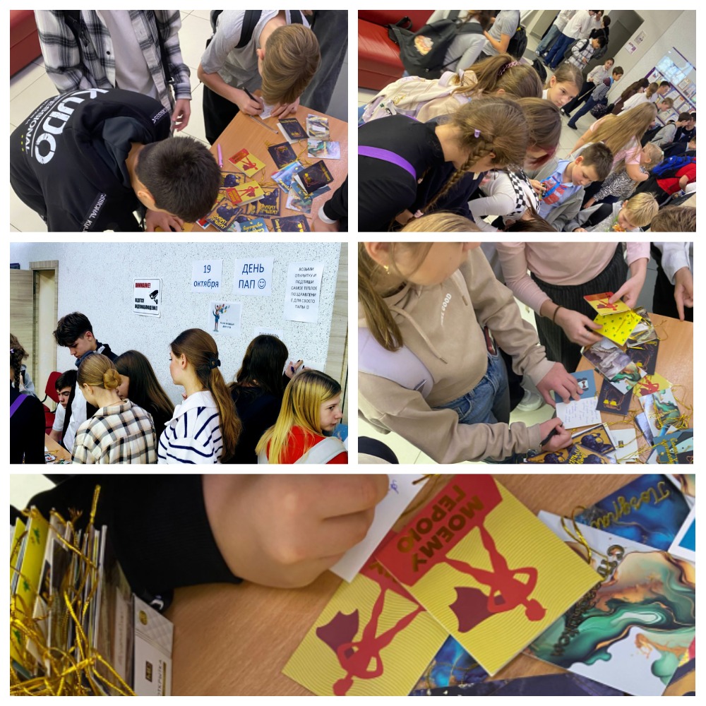 В последнее воскресенье октября отмечается Всемирный День отца — праздник, призванный обратить внимание на роль мужчины в воспитании детей и укрепить семейные ценности. Поэтому 17 октября накануне праздника, в 6-ом отделении Гимназии г. Троицка, советником по воспитанию Яланговой Е.А. были организованы замечательные «добрые» переменки, на которых гимназисты подписывали открытки для своих любимых пап. В теплой атмосфере прозвучало много замечательных слов о папах и улыбки еще долго не сходили с лиц ребят.