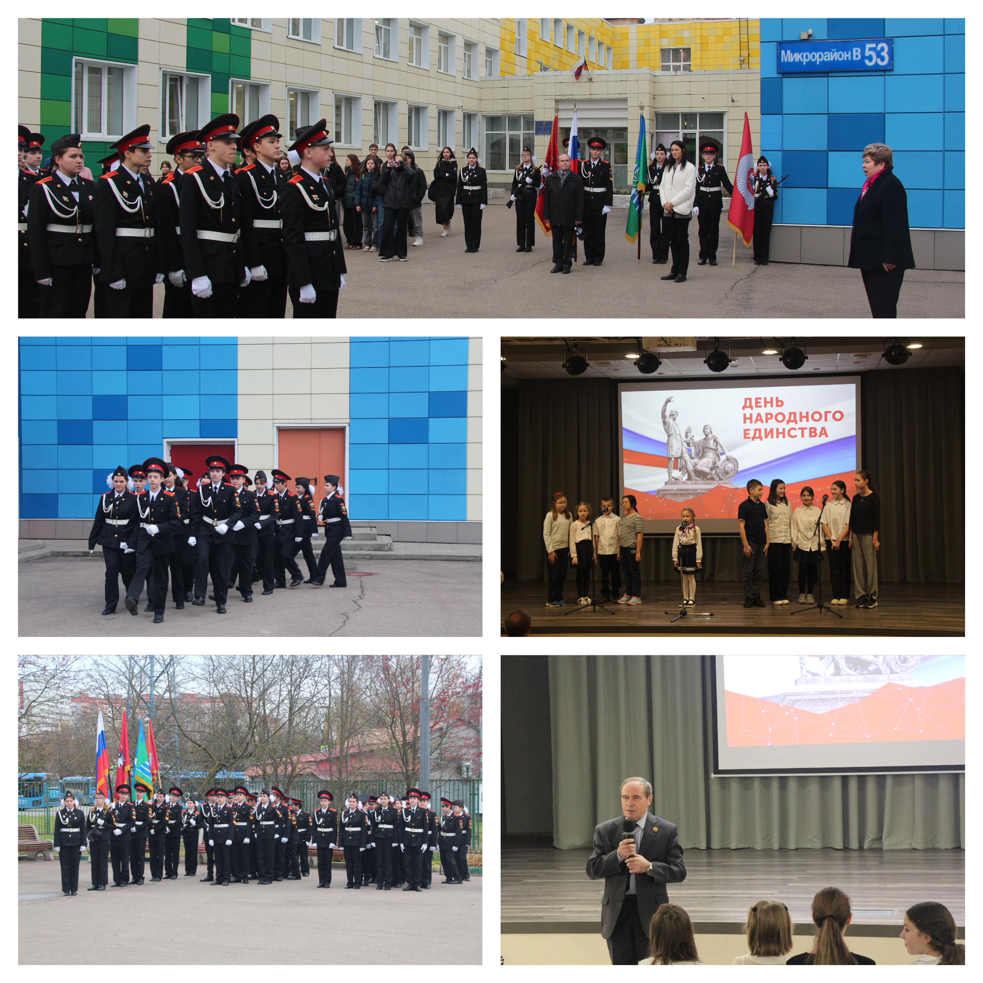 6 ноября в актовом зале 6 отделения прошло торжественное мероприятие, посвящённое двум историческим событиям: Дню народного единства и Торжественному параду 7 ноября 1941 года на Красной площади. Перед ребятами вступил председатель Троицкого совета ветеранов Родионов Владимир Николаевич, школьный хор под руководством Легостаевой О. Н. исполнил композицию "У моей России", завершилось мероприятие на площади перед школой проходом парадными расчётами воспитанником кадетских классов.