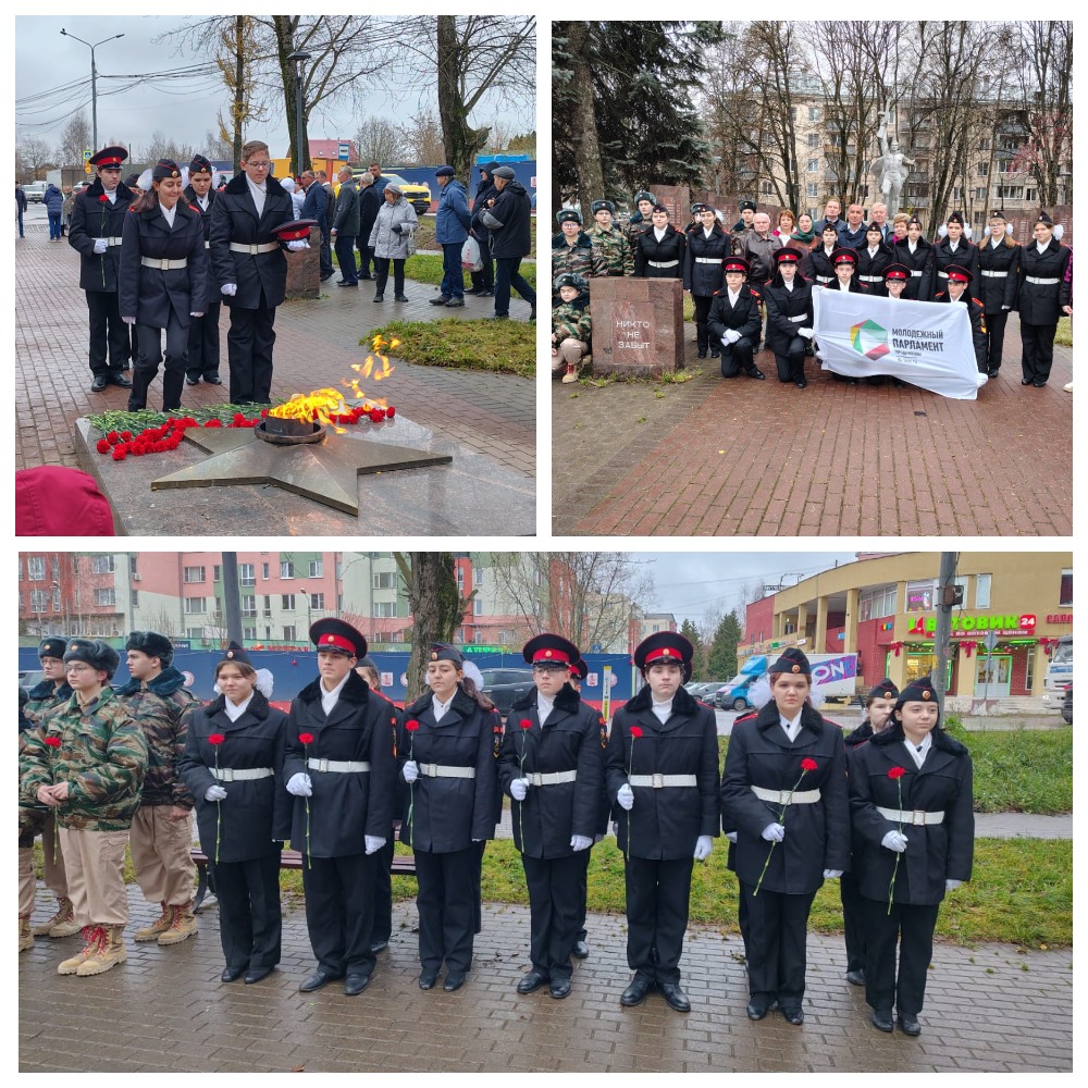 Кадеты Гимназии г. Троицка вместе с офицером-наставником Овсянниковым И.Н. и директором Веригиной Наталией Алексеевной, возложили цветы к Вечному огню в честь годовщины Парада 1941 года.