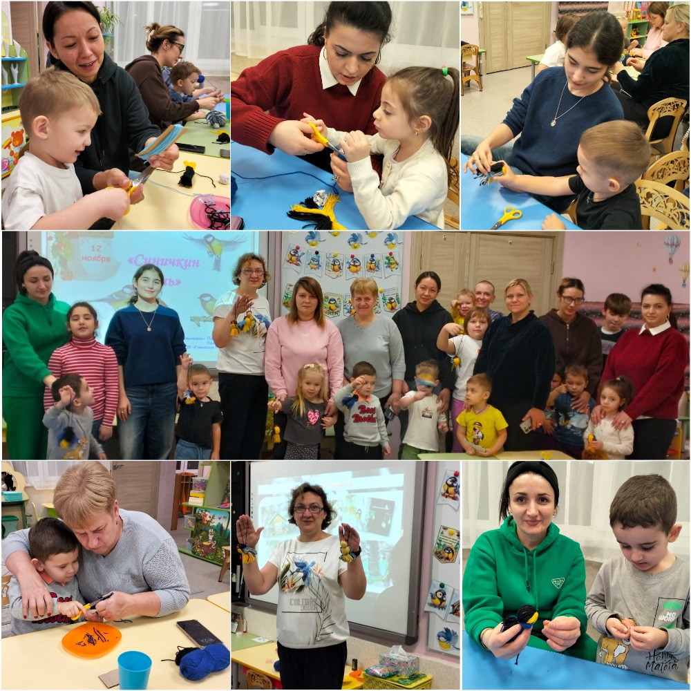 А вечером воспитанников и их родителей ждал мастер-класс по совместному изготовлению синичек из пряжи «Птичка-невеличка веселая Синичка». Перед началом работы вниманию присутствующих была представлена презентация с материалом об истоках происхождения данного праздника, природных приметах с ним связанных. Родителям и детям напомнили о необходимости заботиться о птицах в зимний период, о корме, которым можно их кормить.